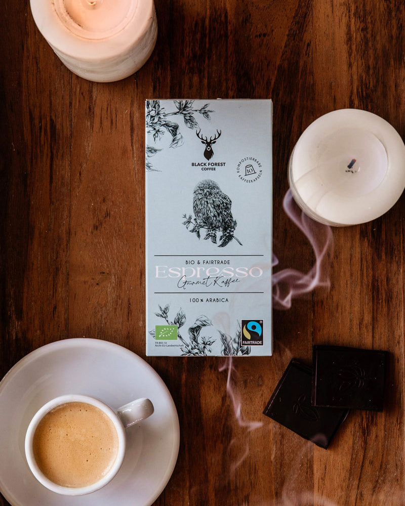Erlebe Kaffeegenuss, wie du ihn noch nie zuvor erlebt hast – mit Black Forest Coffee. Unser Gourmet-Kaffee in Premium-Qualität bietet dir das perfekte Zusammenspiel aus Tradition und Moderne. Die besten verfügbaren Kaffeebohnen veredelt mit einer traditionellen Trommelröstung, verbunden mit modernem Design und ökologisch verantwortlichem Kaffeegenuss. Entdecke eine exklusive Auswahl der besten Kaffeesorten mit unserer Bambi Edition oder wähle aus unserer 100 % Bio und Fairtrade-Kaffeeauswahl.