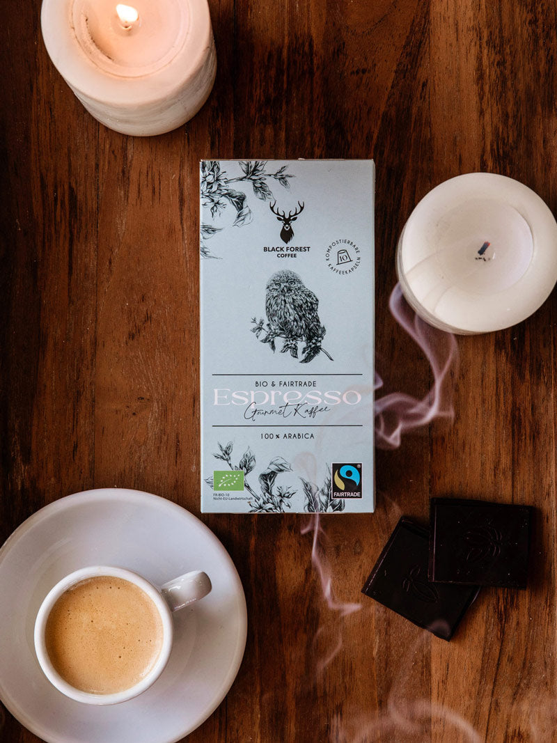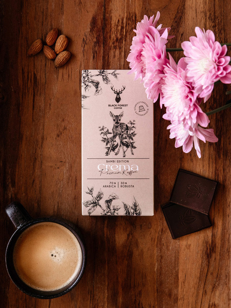 Erlebe Kaffeegenuss, wie du ihn noch nie zuvor erlebt hast – mit Black Forest Coffee. Unser Gourmet-Kaffee in Premium-Qualität bietet dir das perfekte Zusammenspiel aus Tradition und Moderne. Die besten verfügbaren Kaffeebohnen veredelt mit einer traditionellen Trommelröstung, verbunden mit modernem Design und ökologisch verantwortlichem Kaffeegenuss. Entdecke eine exklusive Auswahl der besten Kaffeesorten mit unserer Bambi Edition oder wähle aus unserer 100 % Bio und Fairtrade-Kaffeeauswahl.