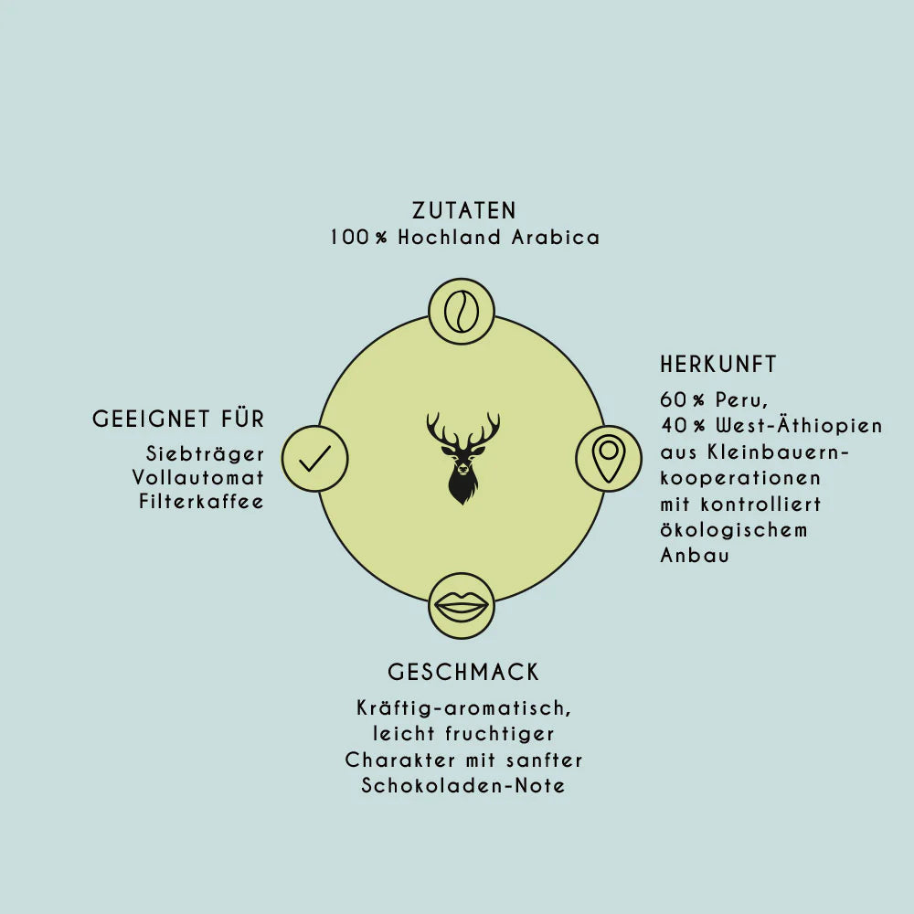 HERKUNFT: 60% Peru, 40% West-Äthiopien aus Kleinbauernkooperationen mit kontrolliert ökologischem Anbau