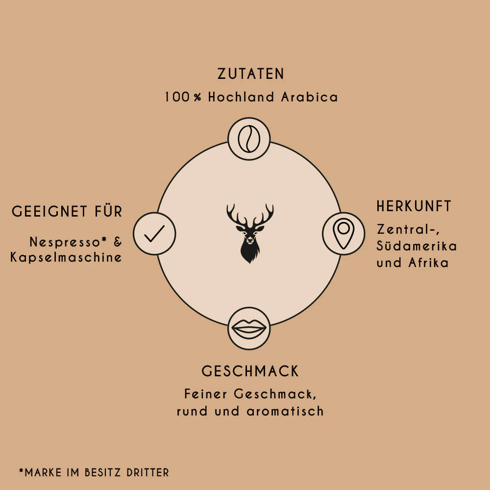 - kompatibel mit dem Nespresso® System* (*Marke im Besitz Dritter, steht in keiner Verbindung mit Black Forest Coffee)