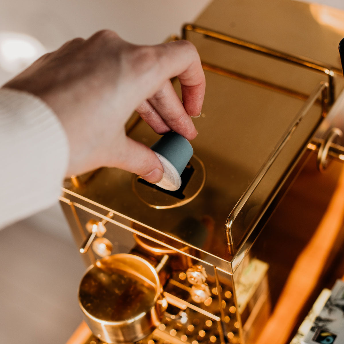 Professionelle Kaffeekapselmaschine von Sjöstrand in gold